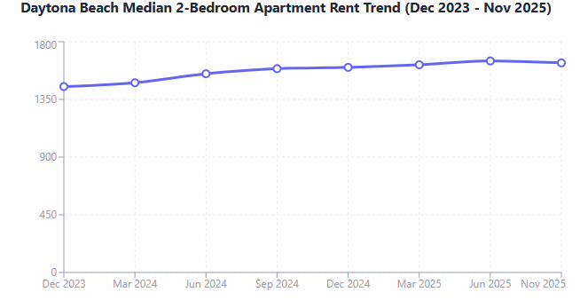 The rental market also provides insight into the area’s affordability. As of November 2025, the median rent for all property types in Daytona Beach averages around $1,599 per month. Specifically, a two-bedroom apartment averages approximately $1,635 per month, which remains lower than the national average. This relatively lower rental cost, coupled with a diverse range of housing options from single-family homes to condos, contributes to the city’s overall accessibility for new residents.